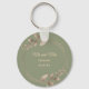 The serene Sage Green backdrop sets a tranquil mood, while the regal Gold frame adds an element of opulence, symbolising the grandeur of love. With a subtle shade of Apricot, the design radiates warmth and romance. Delicate leaves in the top left and bottom right corners evoke the promise of growth and new beginnings. This elegant keychains, adorned with its botanical charm, captures the essence of a sophisticated and love-filled union.