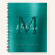 Modern Simple Brushed Metallic Teal Monogram Notebook