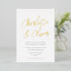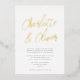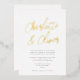 This chic and simple wedding invitation features modern calligraphy script in foil, a classic white background, and modern typography. This elegant yet simple design is a fabulous choice for any style of wedding. You can customise this design even further by adding a photo or additional text to the back. Foil is available in gold, silver, or rose gold and absolutely shines! Select real foil wedding invitations to add that wow factor!