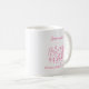 personalised modern simple camp bachelorette party mug in pink and white with a tent in the forest is perfect as a bachelorette party photo backdrop. Celebrate your bridal shower in style with the perfect camping weekend party theme, the perfect theme for the nostalgic vintage 70s bride and her bridesmaids.