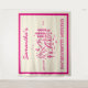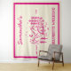 personalised modern simple camp bachelorette party tapestry in neon fluorescent pink and white with a tent in the forest is perfect as a bachelorette party photo backdrop. Celebrate your bridal shower in style with the perfect camping weekend party theme, the perfect theme for the nostalgic vintage 70s bride and her bridesmaids.