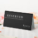 Make a memorable impression with our Modern Simple Clean Elegant Typography Reserved Table Tent Sign. This timeless elegant design features a simple minimal typography over a deep black background. It will definitely elevate the dining experience of your customers.