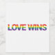 Modern, colourful, vibrant typographic graphic design of saying "Love Wins" in rainbow flag colours. Simple, bold, vibrant and urban graphic art.