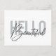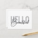 Modern, simple, minimal typographic design of a saying "Hello Beautiful" in tones of grey colour. Cool, urban, trendy graphic vector art with handwritten typography.