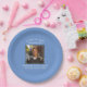 Modern Simple Cornflower Blue Photo Graduation Paper Plate