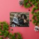 Modern Simple Cursive Script Greeting Family Photo Foil Holiday Postcard