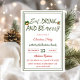 Invite your loved ones to your Christmas celebration with our Christmas party invitation. "Eat, Drink and Be Merry" is presented in festive typography with a Christmas bells and a sprig of aqua holly. Your party details are displayed in elegant font within a double frame. The back side features a white background decorated with hand-painted green dots.