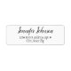 Feel free to personalise and customise this simple, modern and elegant script black and white return address label sticker. Edit options are available.