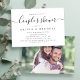 Modern script couple's shower typography design in black and white, with optional couple's photo on the back, simple and elegant. Great for modern wedding.