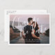 Modern script "change the date" on couple's photo, simple and elegant. inform your wedding guests the updated information with this photo announcement.