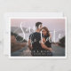 Modern script "save the date" on couple's photo, simple and elegant. Great photo save the date postcards for wedding and other events.