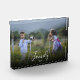 Modern text overlay custom script Family photo block.