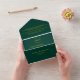 This elegant wedding invitation is perfect for your special day! The vivid emerald green background creates a beautiful contrast to the golden typography. The perfect way to invite your guests to your wedding in style, this invitation is sure to impress. The card is made from a luxurious card stock and is sure to stand out from the rest. The gold typography adds a touch of sophistication and class to the card, making it a perfect choice for your special day. Make your wedding invitation stand out and show your guests how special your day will be!