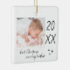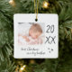 Modern "first Christmas as a big brother" ceramic ornament with a simple design featuring the year and a custom photo. Double sided.