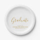 These modern, elegant stylish graduation party paper plates feature graduate in a beautiful and eye catching gold script typography. Personalise this product by adding the name and class or year and school or your favourite quote. Classy and easy to personalise! Celebrate the graduate's accomplishment in style with this trendy graduation party supply. Congratulations!