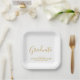 These modern, elegant stylish graduation party paper plates feature graduate in a beautiful and eye catching gold script typography. Personalise this product by adding the name and class or year and school or your favourite quote. Classy and easy to personalise! Celebrate the graduate's accomplishment in style with this trendy graduation party supply. Congratulations!