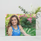 Announce your graduate’s milestone with this modern and simple photo script announcement card. Featuring clean typography and elegant script lettering, it beautifully highlights your graduate’s photo, name, and class year. Perfect for high school or college graduation announcements, party invitations, or keepsake cards, this customisable design offers a timeless and stylish way to celebrate their achievement.
