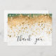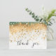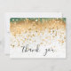 Modern Simple Green and Gold Sequin Script Thank You Card