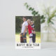 The design features a photo in the front with the greeting "Happy New Year" and name; at the back you can feature 3 photos with the year in number and handwritten text and a custom greeting or message.