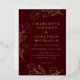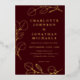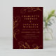 Elegant minimalist wedding invitation featuring deep burgundy wine tones and luxurious gold foil eucalyptus sprig line art. This modern botanical wedding invitation showcases delicate eucalyptus leaves drawn in refined gold foil line art, creating a timeless and romantic aesthetic. The rich burgundy background adds warmth and sophistication, making it perfect for classic, modern, or minimalist wedding themes.