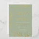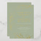 Beautiful simple sage green and gold foil eucalyptus sprig and leaves wedding invitation. A simplistic botanical stylish gold foil line art design on a sage green background. Modern gold foil and white typography script with easy to use templates to create a unique digital and printable diy marriage invitation. A minimalistic botanical design that is easy to personalise using the template. Original artwork by artist Catherine Sweetman