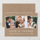 Modern Minimalist Simple Love and Thanks Wedding Bride and Groom 3 Photo Kraft Thank You Card