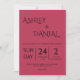 Introducing our contemporary wedding invitation featuring stunning black calligraphy on a vibrant magenta background. This invitation exudes elegance and sophistication, making it the perfect choice for your special day. The rich black calligraphy script is paired with a bold magenta backdrop, creating a unique and memorable design. This invitation is printed on high-quality cardstock and comes in your choice of size and paper type, ensuring a luxurious and personalised touch. Whether you're looking for a classic and timeless look or a modern twist, this wedding invitation is sure to impress your guests and set the tone for an unforgettable celebration.