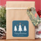 Modern Christmas Sticker with cute trees and stars. Merry Christmas is set in a whimsical handwritten script font. Personalise this Christmas Sticker with your family name.