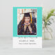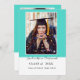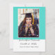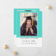 A Modern Aqua Teal blue graduation announcement featuring a frame over your choice of photo. The backside features another photo and more details about your graduate.