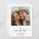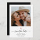 Simple minimalist Save the Date Card with pretty printed rose gold heart under your favourite engagement photo. Trendy modern script calligraphy reading Save the Date over formal wedding details. Let your love shine with this updated classic!