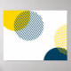 Modern, simple, minimal, cool, trendy, urban abstract background made with geometric circles in yellow and blue colors. Memphis style modern, playful vector art graphic design artwork.