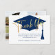 Modern Simple Minimalist Golden Navy Graduation Thank You Card