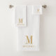 Modern Simple Monogram Gold Script Name White Bath Towel Set