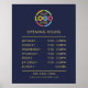 Featuring a sleek minimalist design in navy blue and gold, this custom poster is perfect for small businesses. Personalise it with your text to showcase your operating hours clearly. Ideal for corporate branding and promotional needs, make sure your customers always know when you’re open!
