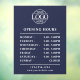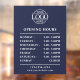 Present your business hours with a polished and professional window cling, tailored for modern corporate and small business environments. Featuring a sleek, minimalist design, this window cling can be fully customised with your company logo and hours of operation. It's the perfect solution for enhancing your storefront's appearance while maintaining clear, effective communication with customers. Ideal for businesses seeking a refined, branded look.