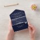 This elegant navy blue wedding invitation is perfect for a modern wedding. the simple design features elegant white calligraphy on a blue background.