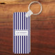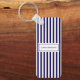 Modern Simple Personalised Navy Vertical Striped Key Ring
