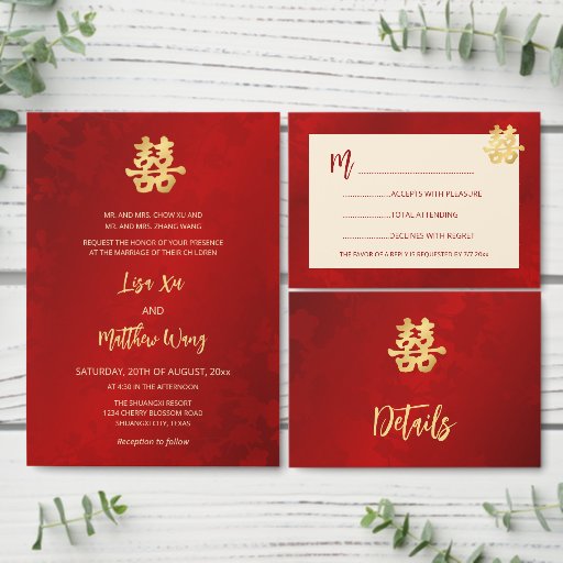 Artistic Double Happiness Simple Chinese WeddingDesigned by Nina Baydur