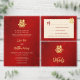 This Chinese wedding thank you card features an artistic gold double happiness sign and "thank you" words in an modern handwritten script on a red shimmering background. With a custom wedding thank you text, your photo and your names and wedding date.