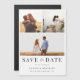 Create your own wedding save the date magnetic cards featuring 3 of your favourite photos. Modern typography design with simple 3 photo collage.