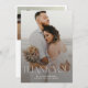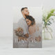 Elegant chic typography overlay bride and groom printable wedding thank you card with text overlay, 2 photos, and editable note message text template. Digital download available.