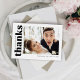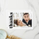 This is a modern wedding thank you card using a bold typography style font along with a minimalistic simple photo design.