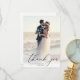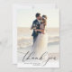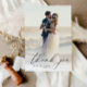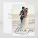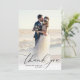 A modern wedding thank you photo card design with elegant lettering and a custom thank you message to your guests at the back. You can freely customise the image and other details.