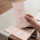 This Wedding Menu in light pink colours will be great for modern Wedding. It features bold letters on the front side of the card. Menu is doublesided, and have editable list of dishes on the back side. You can personalise this menu with the names and the date of event. You also can change background colour, fonts and font colours if needed, just click on "Customise further".