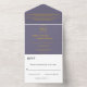 Modern Simple Purple Gold Script Monogram Wedding All In One Invitation