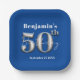 Modern Simple Royal Blue and Silver 50th Birthday Paper Plate