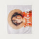 Design is modern and simple. Add a custom photo and add his/her name. The colour of the typography works best on a photo which has colour at the typography part so that it will pop out.