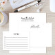 Simple white envelope. Personalised script name and return address on the back flap.