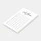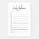 Modern simple to do list personalised note pad with name. Casual trendy script name header with 12 task lines with check boxes. Black text on a white background.