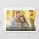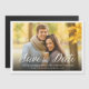 This modern save the date magnetic card features a minimalist design layout with trendy and classic script text. A simple white frame highlights your favourite photo. You can easily personalise the card with your names, wedding date and details.